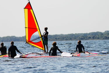 Wir bringen dich auf's Brett und zeigen dir, wie du das Segel im Wind richtig einsetzt. Klingt gut, oder? Na dann ab auf's Brett, entweder alleine, im Team, in einer Kleingruppe oder gleich mit deiner ganzen Schulklasse/ deinen Arbeitskollegen. Wir freuen uns auf euch!